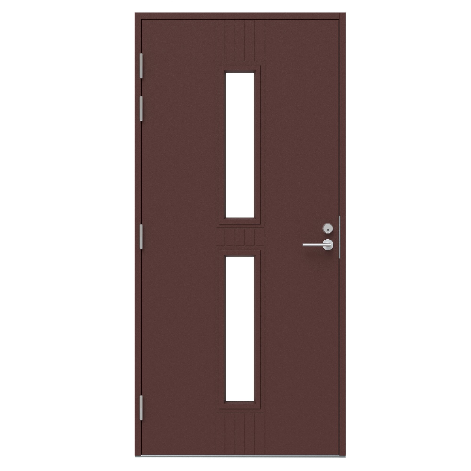 Suunnittele omasiTyylikäs ovi, jonka keskiosassa on kaksi kapeaa lasiaukkoa. Pystysuuntaiset kuviourat kulkevat linjassa lasiaukon kanssa. Ovi on saatavilla useissa eri väreissä ja oven rakenne on valittavissa Varma-rakenteella (U-arvo 0,86), energiatehokkaalla Termo-rakenteella (U-arvo 0,82), sekä kevyemmällä Vieno-rakenteella (U-arvo 0,98).