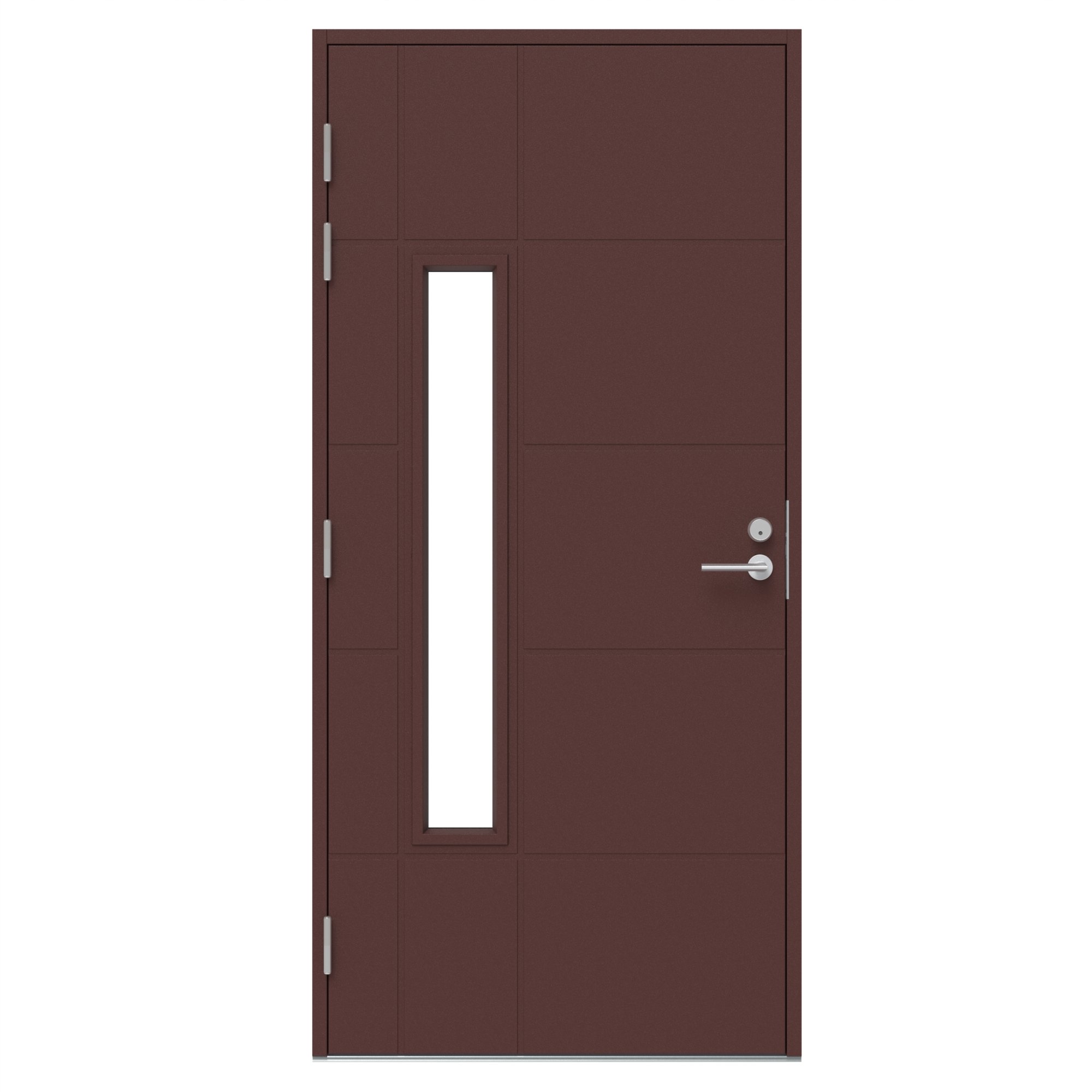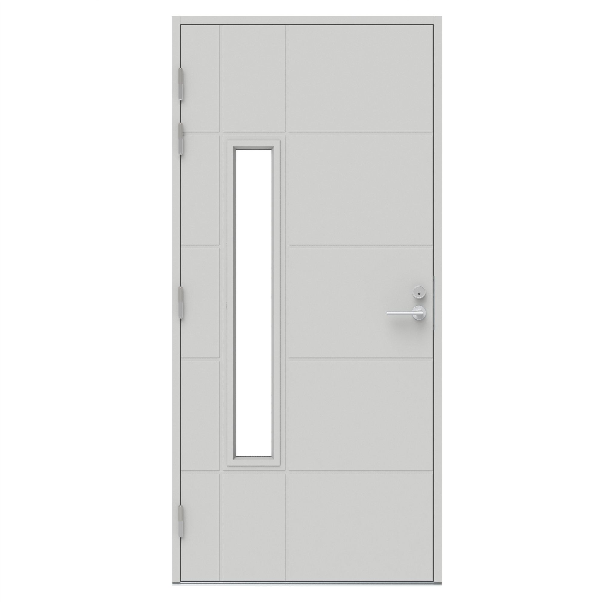 Suunnittele omasiRistiin kulkevalla kuviourituksella varustettu ulko-ovi, jonka saranapuolen laidassa on kapea lasiaukko. Ovi on saatavilla useissa eri väreissä ja oven rakenne on valittavissa Varma-rakenteella (U-arvo 0,82), energiatehokkaalla Termo-rakenteella (U-arvo 0,78), kevyemmällä Vieno-rakenteella (U-arvo 0,95), sekä yhdistelmäovirakenteella.